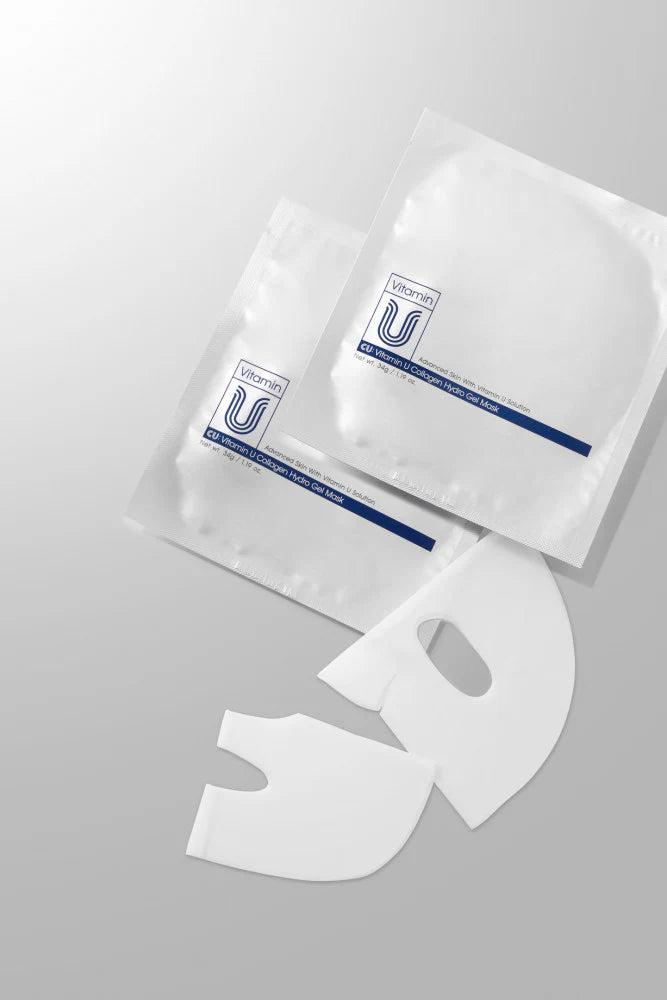 CUSKIN VITAMIN U COLLAGEN HYDRO GEL MASK - dvigubo poveikio hidrogelio kaukė odos stangrinimui ir švytėjimui, 34 g